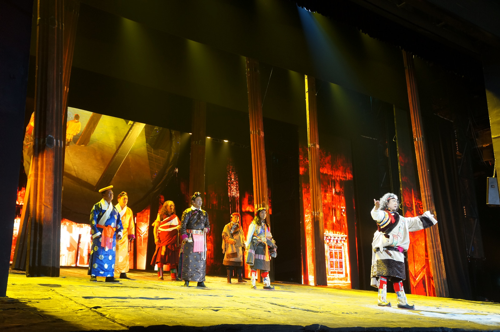 长达两个半小时的演出节奏紧凑,情节丰富,观众的情绪跟随剧情的发展跌宕起伏,演至动情处,台上的演员忘情演绎,台下不少观众也被打动,悄悄在抹眼泪。从头看到尾只顾跟着剧中演员或欣喜或悲愤或感动,丝毫没有觉出时间已经过去了那么久。台上的LED屏也配合剧情生动展现了西藏高原与宁波沿海的不同景致,极大地增强了整部剧的感染力。