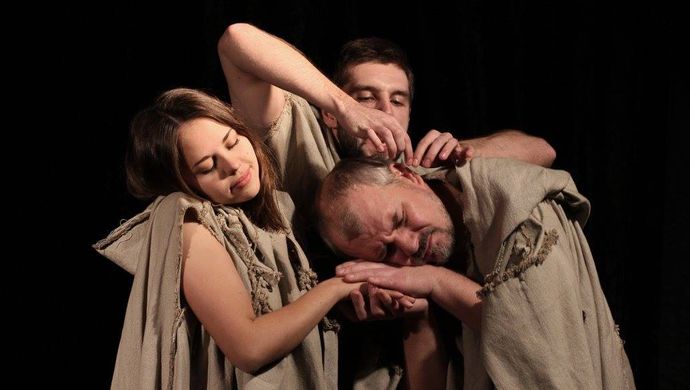 伊朗剧团制作的《哈姆雷特:丹麦的见证人》则是对悲剧《哈姆雷特》的戏仿——有人不会烹饪,有人不会游泳,有人不会唱歌。所有人都知道,哈姆雷特不能做决定。如果一个人不能做决定,那会是什么结果?混乱!在哈姆雷特的父亲去世后,他纠结着是否要参加克劳迪斯和葛楚德的婚礼。他开始有了要在婚礼后杀害新国王和王后的念头。哈姆雷特需要决定是否去参加婚礼,更重要的是否要复仇,但是他就是没有办法做出决定。这一切弄得他精疲力尽,于是他把决定权交给了霍拉修。霍拉修是谁?他是哈姆雷特臆想出来的朋友,哈姆雷特其实有精神分裂症。