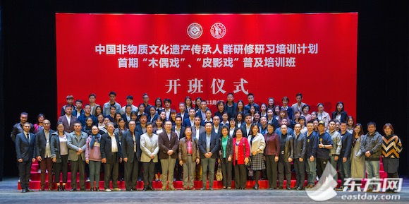 东方网记者刘轶琳11月4日报道:中国的木偶、皮影戏是中华民族优秀的文化艺术遗产。东方网记者今天获悉,由国家文化部、教育部主办的中国非物质文化遗产传承人群研修研习培训计划——“木偶戏”“皮影戏”培训班今天在上海戏剧学院拉开帷幕,本次培训计划旨在提高中国非物质文化遗产保护水平,增强传承活力,弘扬中华优秀传统文化。