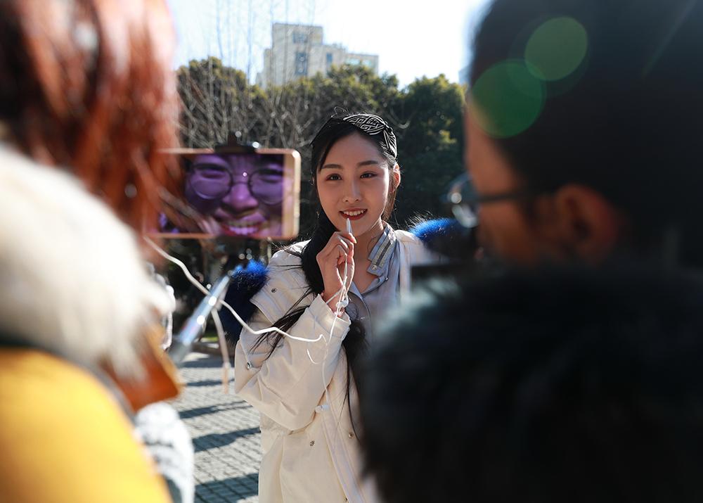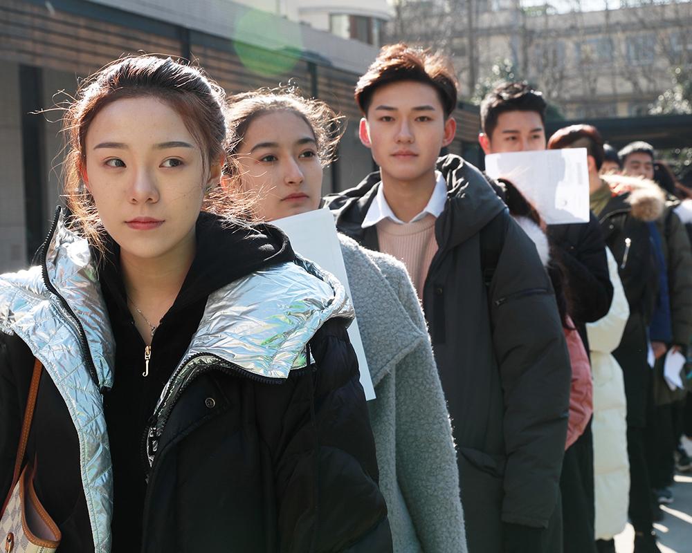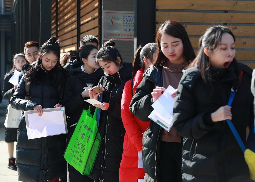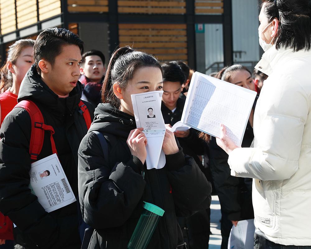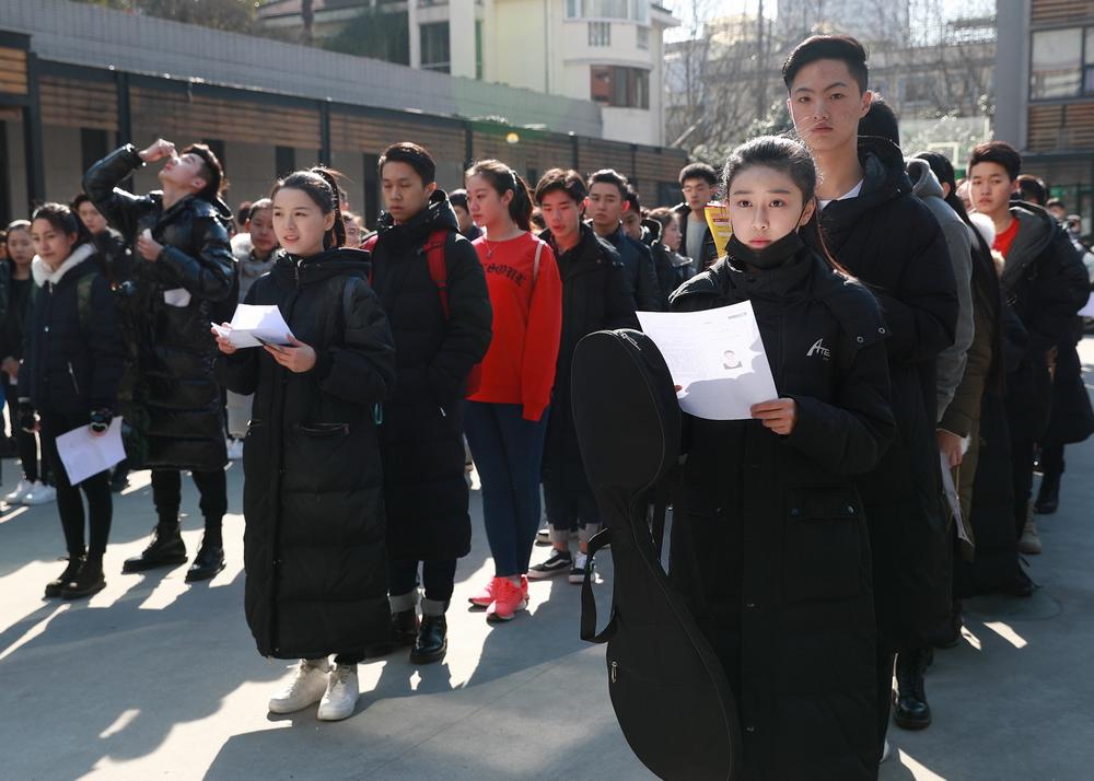 2月10日,清晨虽有寒风,但有阳光相伴,从全国各地前来参加上戏艺考的考生们站在寒风里,也沐浴在阳光下。