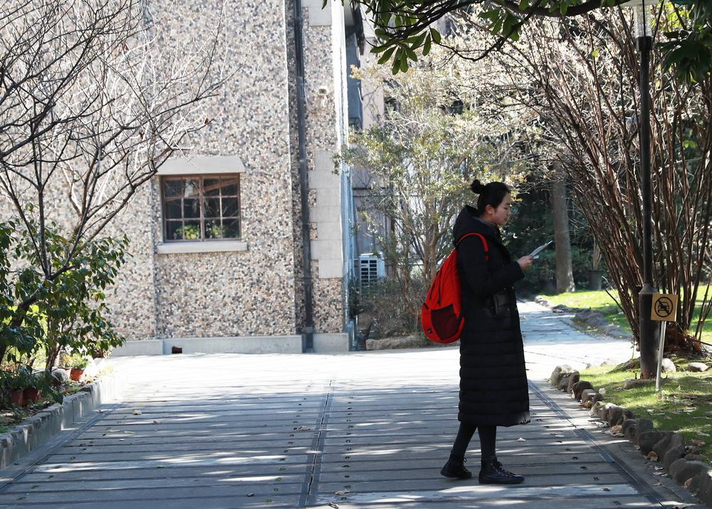 10点30分,原本热闹的校园逐渐清净下来,正在准备下午播音考试的她对我的快门声毫无知觉。