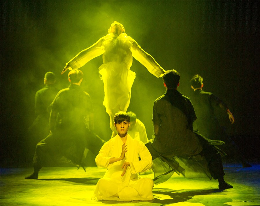 Students of Shanghai Theatre Academy perform a dance created and choreographed by themselves. -- Ti Gong