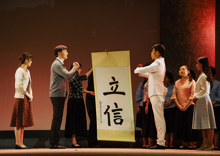 上海立信会计金融学院的创校校长潘序伦也是中国现代会计之父,他于1928年建校就以“立信”为校训,在学校近90年的办学历史中始终倡导诚信文化,这二字校训至今坚持不变。《潘序伦》剧中饰演顾准一角的朱延钰同学说:“我深深感受到这部剧并不单单是一部文献剧,它更蕴含着立信人的魂”。