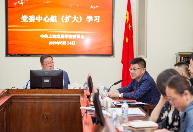 5月14日 上午,我校在佛西楼一楼会议室召开党委中心组(扩大)学习,党委中心组成员、相关部门负责人代表参加学习,本次学习由党委书记谢巍主持,专题学习习近平总书记在学校思政课教师座谈会上的重要讲话精神,李强书记在上海市委中心组关于宗教专题学习会上的讲话精神以及市教卫工作党委系统安全稳定工作要求等。
