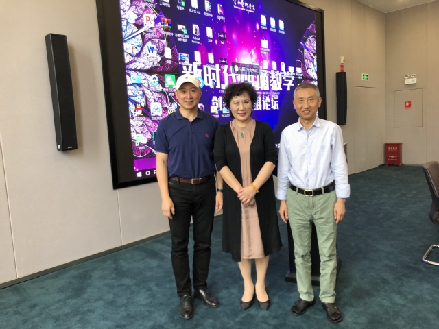 图为我校包磊副教授与另两位发言嘉宾中国传媒大学马谛教授、浙江传媒学院刘力军教授合影