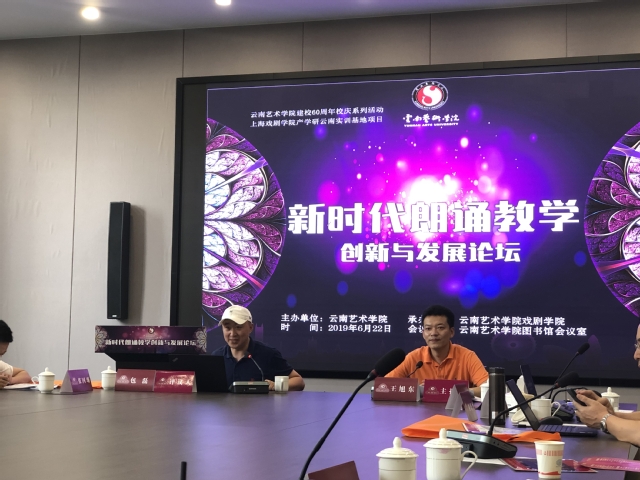 6月22日,作为上海戏剧学院产学研云南实训基地合作项目之一的“新时代朗诵教学创新与发展”论坛在云南艺术学院召开。来自全国25所院校的33位播音主持专业教师及研究生观看了十余个朗诵节目的汇报演出并参与了研讨会。我校电影电视学院播音与主持艺术专业包磊副教授在学术研讨会上作了主题发言。