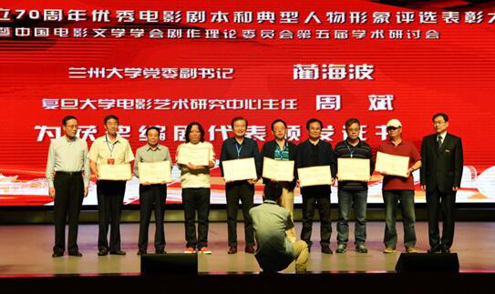 为了庆祝新中国成立70周年,弘扬中国电影文学创作的优良传统,礼赞电影银幕上彰显时代精神的典型人物形象,2019年9月7日,由中国电影文学学会、中国电影文学学会剧作理论委员会主办,上海戏剧学院影视学院、兰州大学文学院、兰州大学党委研工部承办的“新中国成立70周年优秀电影剧本和典型人物形象评选与表彰大会暨中国电影文学学会剧作理论委员会第五届学术研讨会”在兰州大学隆重召开。