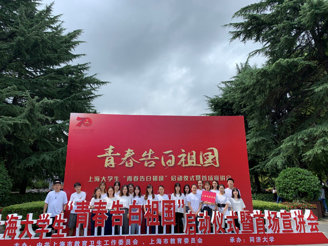 9月5日下午,上海大学生“青春告白祖国”启动仪式暨首场宣讲会在同济大学举行。由我校学工部干舒萍老师带队,与19名学生参加了启动仪式,并聆听精彩宣讲。