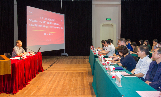9月17日上午,上海戏剧学院党委在新实验空间剧场开展了“不忘初心、牢记使命”主题教育首场专题学习研讨会。中共上海市委讲师团成员、上海市委党校特聘教授袁秉达作了《习近平新时代中国特色社会主义思想学习纲要》(下称《纲要》)导读。