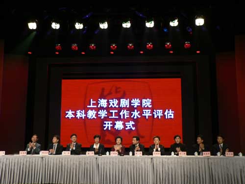 上海戏剧学院接受教育部普通高等院校本科教学工作水平评估的汇报会于11月6日上午假我校端钧剧场(原小剧场)隆重举行。上海市人民政府副市长严隽琪到会致辞。教育部评估专家组组长、中央文化管理干部学院副院长嬴枫主持了汇报会。专家组副组长、中央戏剧学院副院长刘立滨,专家组成员、北京电影学院院长张会军,专家组成员、中国戏曲学院副院长白光耀,专家组成员、中国传媒大学影视艺术学院院长李兴国听取了汇报。我校主持工作的副院长韩生代表学校向专家组作院长报告。上海市人民政府副秘书长姜平、文化部教科司副司长王丰、上海市教委主任沈晓明、上海市教委副主任王奇等有关部门的领导在我校党委书记贺寿昌、党委副书记副院长葛朗、副院长刘志钢、副院长孙惠柱陪同下出席了汇报会。出席汇报会的还有评估组秘书吕楠(青岛理工大学)、杨建华(中央美术学院)、王松光(中国音乐学院)和我校老同志代表、师生员工代表共计280人。