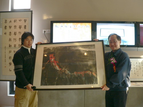 图为副院长刘志钢代表学院接受陆祺炜赠画