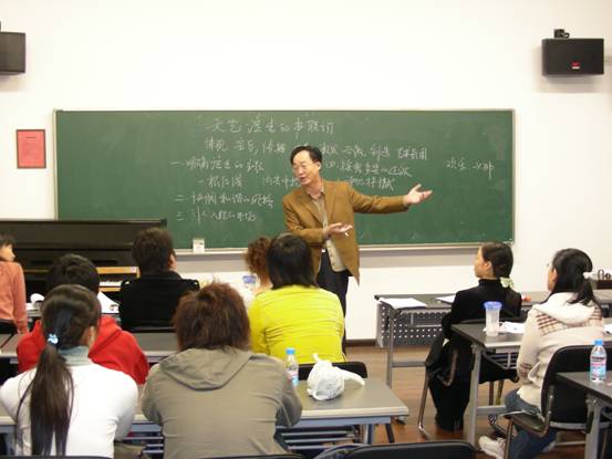 下午的课程是陶延东老师的普通话培训和文艺演出串联词的撰写。陶老师从普通话的沿革开始,为大家介绍什么是普通话,以及怎样才能讲好普通话。精彩生动的演讲,不仅吸引了学员们,也刷新了学员们对于普通话的了解和认知程度,特别是关于“啊”的声变处理,引起了大家的广泛的兴趣……之后,陶老师还根据上午所发的剧本,为每个角色作了纠正普通话发音的指导。后一节课的内容是有关文艺演出串联词的撰写,在对文艺演出串联词作过一番理论上的分析以后,陶老师要求每位学员撰写有关三个节目的串联词或三分钟的串联词,还要求写完之后每位学员上台来进行表演。这是通过实践来检验自己所写的串联词,每位学员都表现得非常投入。