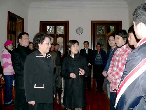 翁书记一行首先在佛西楼老干部活动室接见了我院拔尖学生代表20余人,在听取团委书记徐咏对拔尖人才的一一介绍后,翁书记高兴地鼓励大家要再接再厉,在不久的将来能够成“大师”,出“大作”。