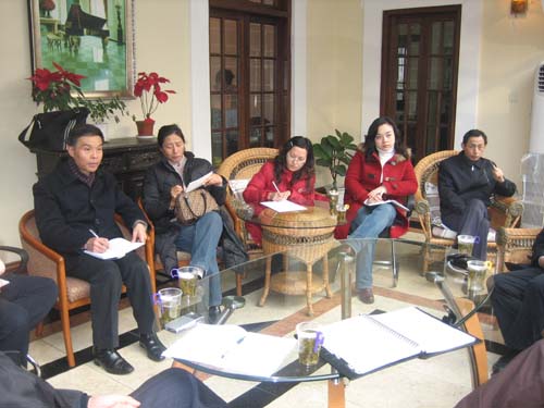 公教部主任陈敏老师向院领导汇报06年度的工作以及07年的工作安排。会上各位老师积极发言,结合自己的教学实践,向院领导作了汇报。院领导对06年度的工作给予了积极肯定,同时对07年的工作安排作了指导和安排,尤其是针对两个校区深度融合问题,院领导高度重视,当场指示要以公教部为试点全面推进两校区人员和课程的深度融合。