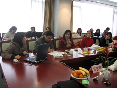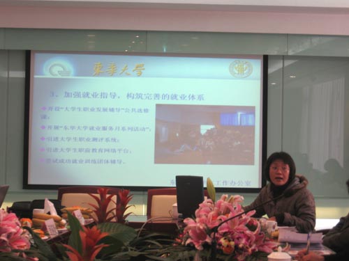 图为东华大学学生工作办公室副主任刘淑慧老师在做学生工作经验交流