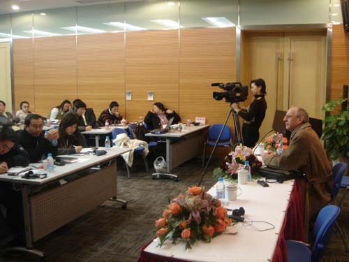 约翰・霍金斯上海之行的第一站是在浦东张江文化科技创意产业园区开设为期两天的创意经济讲座(1 月8日、9日)。讲座由我院党委书记贺寿昌主持,浦东新区宣传部副部长刘豫峰在会上致辞。此次讲座得到中共上海市委宣传部、浦东新区政府的特别支持,由上海市创意产业协会、浦东张江文化科技创意园区、上海戏剧学院创意学院主办。学员主要来自浦东新区所属各园区、上海宣传及文广系统、上海市创意产业协会以及现代服务业联合会会员单位。