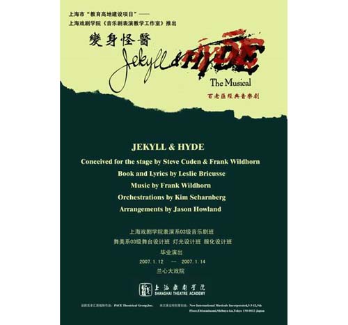 1月12日至14日,我院表演系03级音乐剧本科班经过近四年的学习,在兰心大戏院举行毕业公演,演出剧目为美国百老汇经典音乐剧《变身怪医》。该剧的成功演出引起媒体广泛关注,《解放日报》、《新民晚报》、《新闻晨报》纷纷撰文报道,相关报道请见我院网站主页媒体上戏栏目。