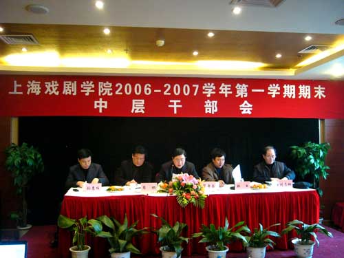 1月20日,“上海戏剧学院2006-2007学年上学期期末党政中层干部会”在金山区世安宾馆会议室召开,院党政领导及全体党政中层干部参加了会议。会议由党委书记贺寿昌同志主持。