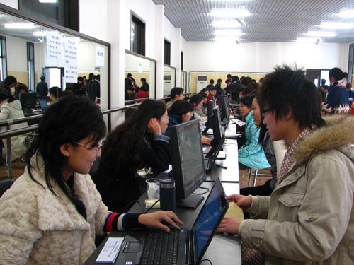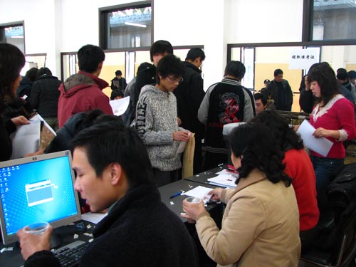 图为工作人员给考生校对网上报名信息图为工作人员为考生打印准考证 今天是上海戏剧学院2007年戏剧影视美术设计、艺术设计等专业招生考试报名(华山路考点)的第一天,在华山路招生现场,招生报名工作紧张而有序地进行。(孔庆尧摄影)