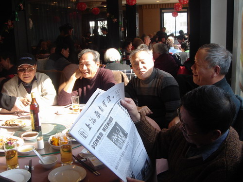今天到会的有近200名老同志,他们从家里冒着寒风抵达会场,大家互相致敬、互相问候,宣传部同志还向到会同志发放了今年改版后的新的一期学校报纸,大家对此非常高兴。同志们一边看报、一边为学校的发展高兴,他们希望学校今后的发展能够更加兴旺发达。