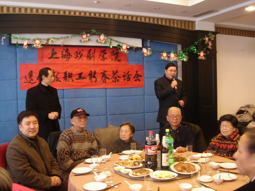 在新春佳节到来之际,我校举行了一系列慰问、团拜活动。今天中午,学校在位于江苏路愚园路的新潮流酒家举行2007年退休教职工的团拜活动。贺寿昌、韩生等学校领导出席了活动。团拜会由人事处处长张依顺主持,贺寿昌书记和主持工作的韩生副院长先后发表讲话。他们首先代表学校向常年来给予学校工作巨大支持和无私奉献的老教师、老干部、老职工表示衷心的感谢!在回顾了06年的工作并且展望了07年的发展后,他们强调:在新的一年工作中,我们还要继续争取老同志的关心和指导,特别在涉及评估等教学方面的工作,老同志的经验是我们的财富,我们一定要进一步挖掘和提炼好。最后,校领导举杯到每一桌前,祝大家身体健康、合家欢乐!
