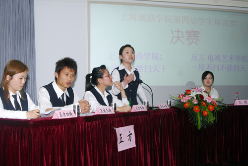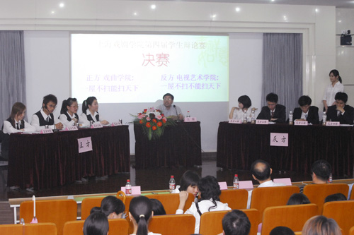 6月14日晚6:30分,上海戏剧学院第四届学生辩论赛决赛在莲花路校区学术报告厅举行,由正方戏曲学院代表队对阵反方电视艺术学院代表队,辩题围绕“一屋不扫能不能扫天下展开”,比赛双方进行了唇枪舌剑的较量。这道辩题本是中国的一句古话,几千年来一直指导并深刻影响着中国人,但在当前新的社会环境下,人们不断受到新思想的影响,且生活方式也发生了改变,那么这句话是否还适用,确实是一个值得推敲与思考的问题,以这句话作为辩论赛决赛题目更显人文关怀,更有传统与现代思维交锋之感。正方站在解决问题、取得成功可以是多角度多途径的进行辩论,而反方则站在积累、质变到量变等角度进行驳斥,辩论非常激烈,观众的掌声、叫好声一次次的回荡在辩论赛场上,宣传部部长张生泉老师做了深入而精彩的点评。最后,电视艺术学院以动态配合优势取得了比赛的胜利,从而获得了“上海戏剧学院第四届学生辩论赛”的冠军,戏曲学院以同样精彩的辩论获得了比赛的亚军。
