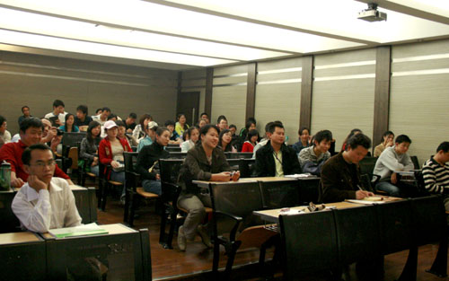 辜怀群首先以她自创的“鱼缸理论”开场,观众恰似水,表演制作者恰似鱼,剧场恰似鱼缸,鱼没有水会死,水没有鱼会缺少趣味,鱼和水没有缸会失去生存的空间,缸没有鱼和水只是空空的摆设,鱼、水、缸紧密相连。讲到这里,辜怀群一改嘻嘻哈哈的表情,严肃地说:“我在跟你讲什么?我在讲每一个人都应该有自己的空间,而你在哪里?你首先要给自己定好位。”“只有一种办法可以赢,那就是你做的恰好是你喜欢的。”演出制作、剧场管理、观演之道,辜怀群情致所至,无所不包。让现场的观众只恨时间太快。演讲结束后,辜怀群还与师生进行了简短的交流。