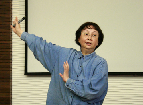 一头短发,一件半旧的牛仔衬衫,一口标准甚至略带“京味儿”的普通话,让人很难与“辜振甫之女”这样的称号联系在一起。10月25日下午14:30分,辜怀群在副院长韩生的陪同下,来到红楼209教室,为上戏师生做了一堂题为《戏剧路上我和你》的精彩演讲。如果说,一开始,很多观众都是因籍着“辜振甫之女”而来看看热闹,此后的120分钟却给了许多人前所未有的冲击。两个小时里,济济一堂的209教室里时而鸦鹊无声、时而开怀大笑,分享着这位与众不同的戏剧人带来的戏剧之喜。