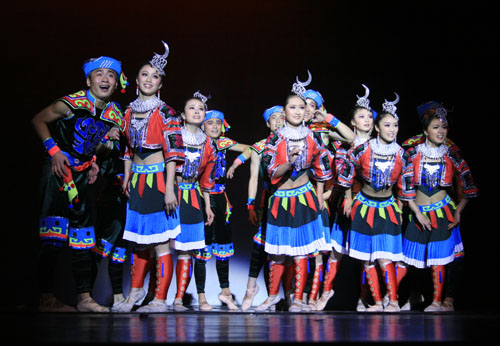 《一片羽毛》、《冲》充分展示了08届中国古典舞同学扎实的舞蹈功底和艺术造诣。各种翻腾、跳跃和旋转技巧以及挑战身体极限的软开度和肢体控制能力加上或细腻、或低沉、或激昂的情绪起伏,掀起了演出现场一次次的波澜。而《僚妹山歌》、《游方》等充满着田野气息的民间舞蹈也展示出这班民族民间舞同学的聪颖和智慧。这两个节目都是他们自编自演,他们把课堂所学和民间舞蹈文化相联系,用自己的肢体传达出对于西南地区苗族、彝族等少数民族风土人情的体味。隆隆的鼓声,一群健硕勇敢的藏族小伙子身背皮鼓尽情的舞动,展示着藏族传统舞蹈的魅力;红纱飘飞,一群美丽的少女用婀娜的身姿所营造出来的珊瑚造型,凸现着山东秧歌的独特风韵。