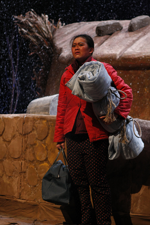 1月5日晚,由导演系05级毕业班同学创作演出的原创话剧《菩萨岭》在端钧剧场成功上演,校领导楼巍、孙惠柱以及学校演出委员会专家到场观看演出。原创话剧《菩萨岭》表现的是当代中国农村真实而平实的故事,由我校导演系原创,卢昂教授执导。为了真切地表现当代农村生活,卢昂导演带领整个剧组赴河南著名贫困县体验生活,寻找素材,并为农民演出,听取意见。