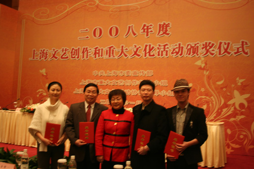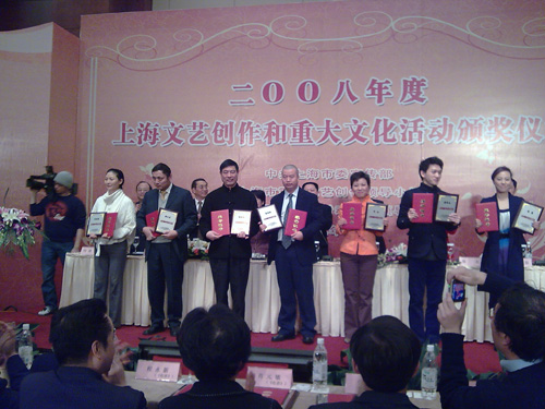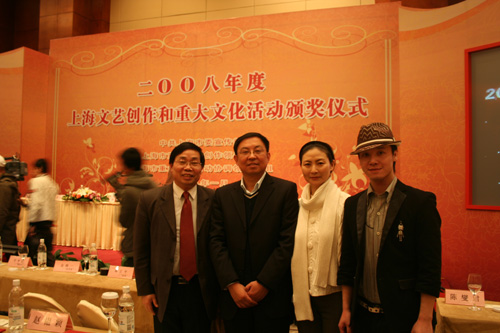 2008年度上海文艺创作和重大文化活动颁奖仪式1月20日上午在锦江饭店小礼堂隆重举行,36部作品、13位文艺家、14个活动项目受到嘉奖。上海市委常委、宣传部长王仲伟出席并颁奖。