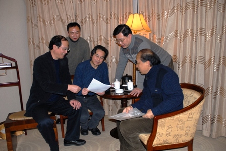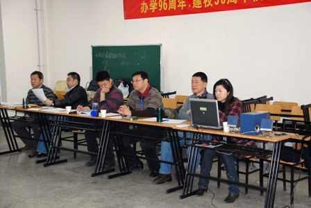 图为戏文系老师在集体研究考试工作