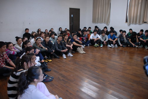 第一次上课,阿德里阿诺教授逐个询问了学生的情况,最喜欢的演员是谁,入学前接受过哪些艺术教育,为本次工作坊准备了怎样的角色,选取了什么音乐。面对外教,学生们还有些羞涩,然而,不太流利的英语背后却流露出对本次工作坊热切的期待。