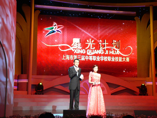 4月18日下午,上海市“星光计划”第三届中等职业学校职业技能大赛闭幕式在上戏剧院举行。中共上海市委副书记殷一璀,全国人大常委、教科文卫委员、原教育部副部长吴启迪,上海市副市长沈晓明,上海市政协副主席钱景林,市委副秘书长姜�,市政府副秘书长翁铁慧,市教卫党委书记李宣海,市教委主任薛明扬等领导在我校领导楼巍、韩生、刘志钢陪同下出席闭幕式并为获奖选手颁奖。