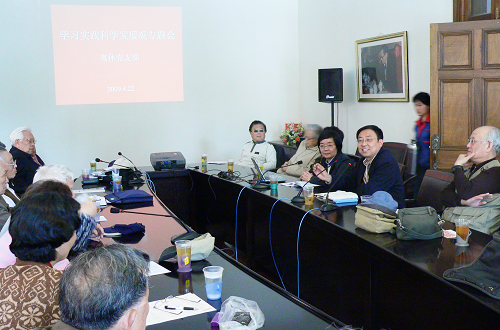 4月22日上午,阳光明媚,离休党支部学习实践科学发展观专题讨论会在佛西楼会议室举行。会议由离休支部书记冯少唐同志主持。党委书记楼巍同志、老干部处处长刘海庆同志出席会议。