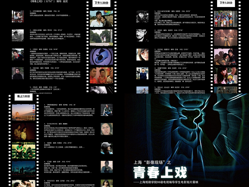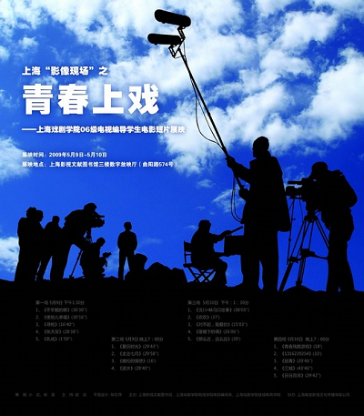 5月9日(周六)至10日(周日),由上海影视文献图书馆、上海戏剧学院电视艺术学院编导系、继续教育学院主办,上海雕龙影视文化传播有限公司协办的上海“影像现场”之《青春上戏》――上海戏剧学院06级电视编导学生电影短片展映将于上海影视文献图书馆(曲阳路574号)拉开帷幕。本次影展将分四场,9日和10日下午1:30、晚上7:00各一场。届时将共有20部学生电影短片搬上银幕,敬请莅临赏鉴。(图/文 06电视编导 编辑/子鱼)