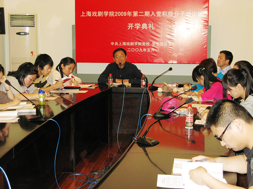 5月7日晚,我校华山路校区的四十余位向党组织递交了入党申请书、表现突出的入党积极分子在佛西楼会议室参加了“上海戏剧学院2009年度第二期入党积极分子培训班”的开学典礼。党委书记、党校校长楼巍老师,组织部部长邱中岳老师出席开学典礼。