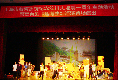 幕布缓缓拉开,凌乱的教室、坍塌的墙体,把人们带回了地震中的教室。昨晚(5月11日),由华东理工大学31名来自汶川地震灾区的学生自编、自导、自演的舞台剧《延考生》,在我校上戏剧院举行首次公演。