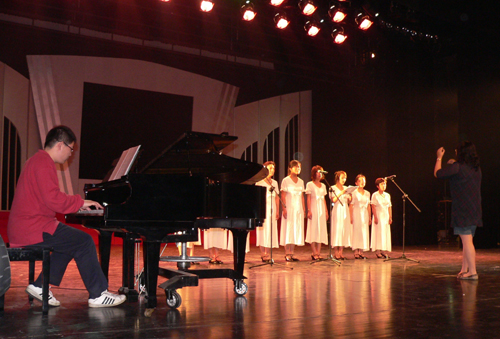 在教委领导的指导下,为做好演出工作,我校成立了以副院长刘志钢为组长、陈方为副组长的协调工作组,演艺中心导演薛伟君担任演出总导演,各有关职能部门同志也积极配合,争取使这项工作得到圆满完成。为了保证质量,全部演员今天都到我校走台、合成。虽然是星期天,但我校很多部门的同志也放弃休息,全力以赴、做好服务。(图:一品、白水;文、编辑:白水)