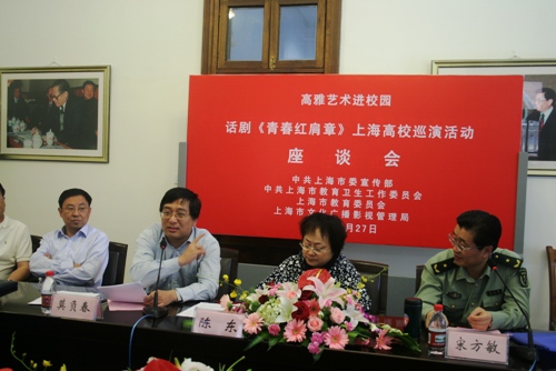 本报讯 (记者樊丽萍)昨天,“高雅艺术进校园:《青春红肩章》上海高校巡演活动座谈会”在上海戏剧学院举行。