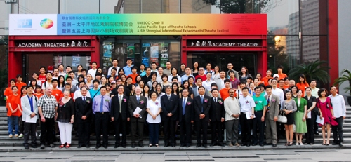 今日下午5:30,联合国教科文组织国际剧协亚太戏剧院校博览会暨第五届上海国际小剧场戏剧展演开幕式在我校隆重举行。文化部教科司司长于平,市委宣传部副部长陈东,市教委副主任李骏修,联合国教科文组织国际剧协代表佩里奈迪,中国戏曲学院副院长巴图,静安区区长张仁良、政协副主席黄森林、副区长方世忠,上海文化发展基金会办公室主任唐静恺,我校党政领导楼巍、韩生、刘志钢出席开幕式。开幕式由亚太局主任、我校副院长孙惠柱主持。