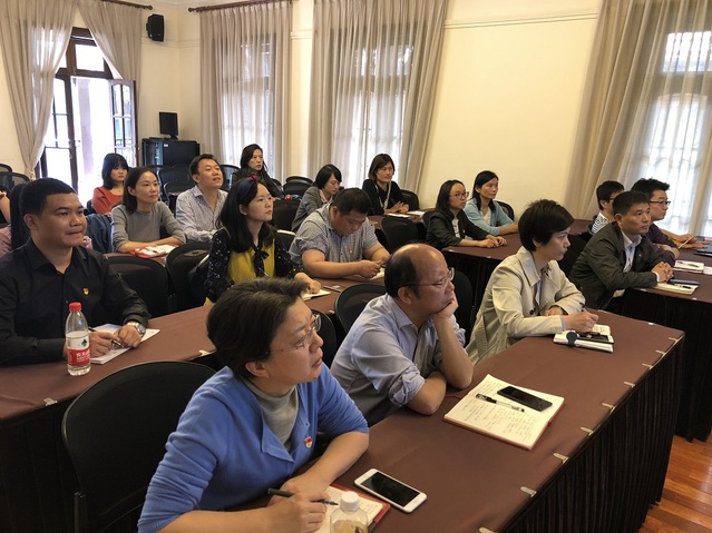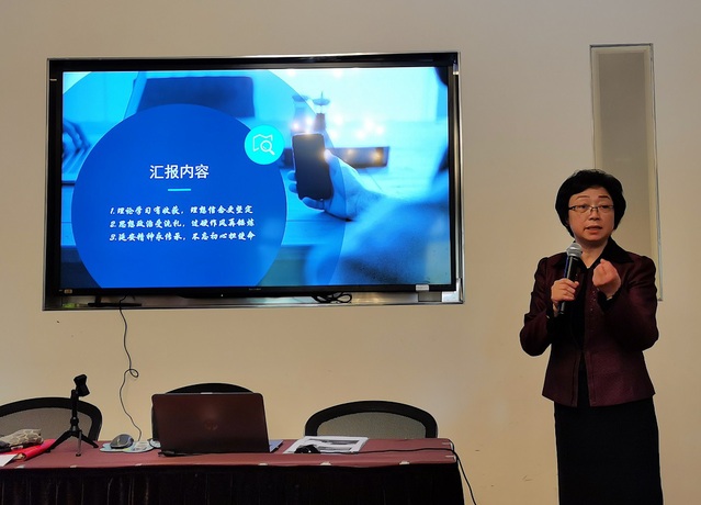 张佳春老师首先介绍今年7月自己参加中国延安干部学院举办的第129期厅局级干部党性修养专题培训的情况。在培训的14天中,他们“通过深入学习习近平新时代中国特色社会主义思想,提高政治能力;通过认真回顾党中央在延安十三年的辉煌历程,坚定理想信念;通过到访梁家河,深入感悟蕴含发展中的‘大学问’、人民情怀和奋斗精神……生动的党性教育课和理论辅导课,重温记忆的历史课和体验课,还有激情教学课和组织生活课等,使思想得到升华,精神受到洗礼,党性得到锤炼,思想上更加清醒,理论上更加成熟,行动上更加坚定”。