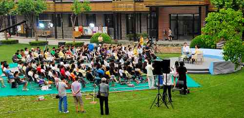昨日下午3:30分,上海电视台纪实频道“风言锋语”栏目赴我校录制节目。红楼前草坪上,搭起临时露天演播室。栏目组邀请了我校表演系副主任何雁、《高考1977》导演江海洋作为特邀访谈嘉宾,我校副院长孙惠柱、党委宣传部部长张生泉、导演大师班学员刘若云导演,学生处副处长徐咏、团委书记陈云都现场观看了节目录制。此次活动由学生处主办,宣传部协办。我校师生一百余人参与了节目录制。