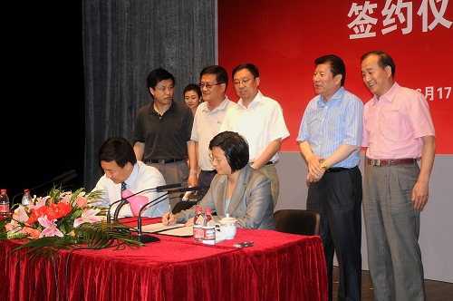 杨浦区区委副书记、区长宗明与我校主持工作副院长韩生代表双方签约