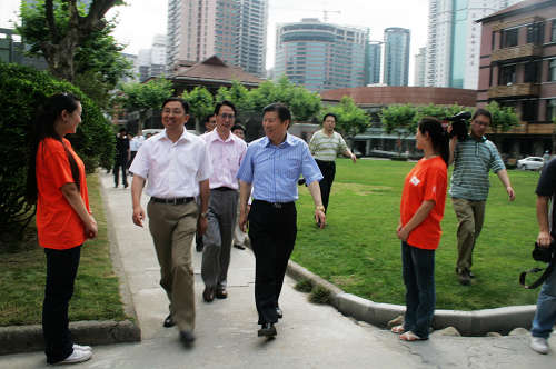 继4月10日我校中心组成员在党委书记楼巍同志的带领下,赴杨浦区举行“深入学习实践科学发展观中心组联组学习活动”之后,昨天(6月17日)下午,杨浦区委中心组又在区委书记陈安杰同志的带领下,专程来我校参观考察、传经送宝,与我校举行第二次中心组联组学习活动。