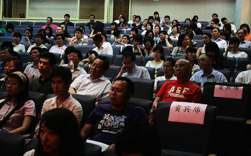 图为杨浦区区委书记陈安杰同志为我校师生作学习实践科学发展观专题辅导报告