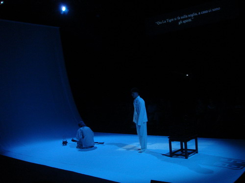 20日一早我们就开始了紧锣密鼓的合成联排,当晚,我们在米兰PICCOLO小剧场首演了中国经典话剧《原野》,赢得了现场观众经久不息的掌声。演出结束后,剧院制作部总监Andred先生对本戏给予了很高的评价,他认为这是一场十分有趣味的演出,导演高明地运用了极其简约的手法讲述充满东方意蕴的故事。整个演出,演职人员精心处理每一个细节,具有高度的注意力。演员表演细腻而又精准,不放弃任何一个思考和行动的瞬间,从而带领观众顺利地走进了剧情和角色丰富的生活。许多同来意大利交流的别国老师和学生也对演出非常喜爱。对焦母、仇虎和大星的扮演者予以肯定,尤其是对苏蒙蒙同学扮演的焦母予以较高的评价。剧中所使用的所有音效――人声的模拟细腻而逼真,清脆悦耳的锣鼓、梆子声响充满了独特的中国意蕴。另外,自由而中性的功能型演员、灵活变动的木框大大拓展了舞台空间,以及投影的应用也让他们倍感兴趣。