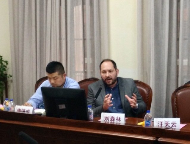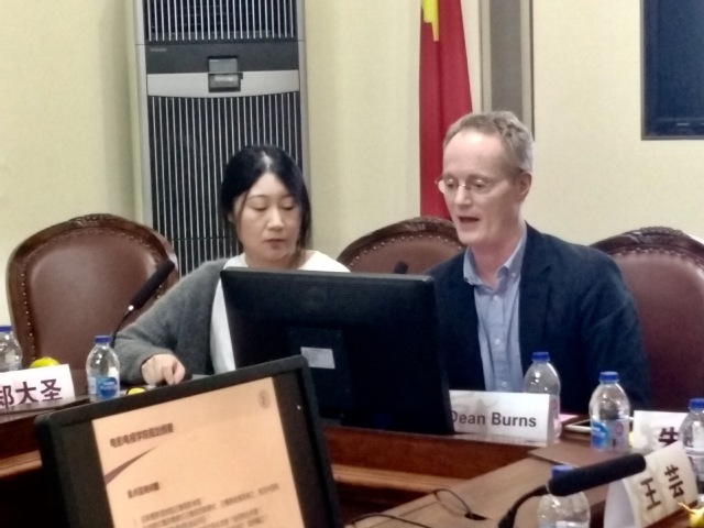 图为上海大学温哥华电影学院副院长Dean Burns教授发言