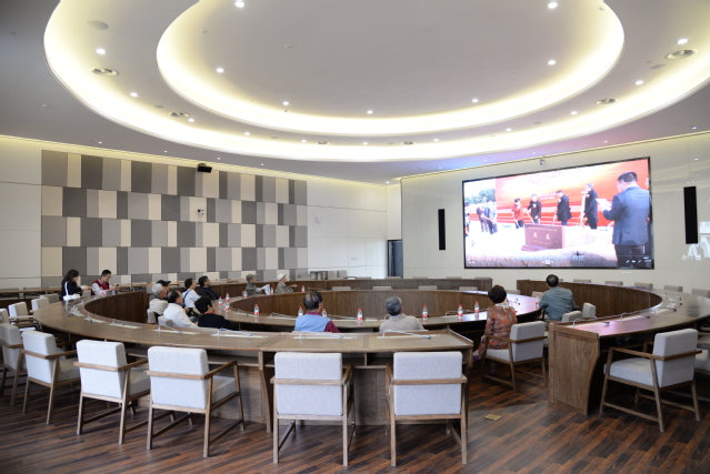 通过参观学习,老同志们详细了解了学院“四个中心”布局规划,了解了目前新校区教学设施、设备建设情况及投入运营使用情况等。作为受到上戏滋养,与上戏共同成长,见证上戏发展,对上戏饱含深情的老一辈上戏人,老同志们边参观校貌,边驻足畅谈,纷纷回忆起当年在上戏不大的校园里艰苦奋斗的点滴日子,回忆起当年“池边宿舍”里稍显拥挤但相濡以沫的生活场景,回忆起个人、家庭与上戏大家庭同呼吸共命运的那一幕幕,大家依旧激情满怀,感动不已。如今昌林路校区投入使用,学院更加明确了发展的全新空间布局和整体规划,老同志们感到由衷欣喜与自豪,共同祝愿学院的发展蒸蒸日上。