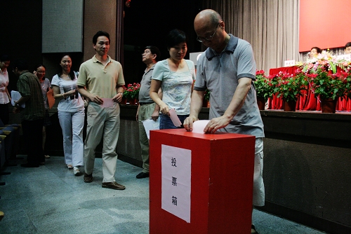 全体代表对《上海戏剧学院行政工作报告》进行票决